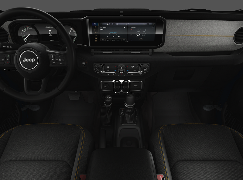 If you want a mid-sized pickup truck that can tackle some serious off-road conditions, the Jeep® Gladiator Sport is about your only option. If you read a Jeep® Gladiator Sport review, you’ll know the truck is offered with a powerful 3.6-liter V6 engine, has a well-appointed interior, and has a handy 5-foot bed that can hold an impressive 1,700 pounds. The Gladiator can tow a max of 7,650 pounds as well. And the Gladiator Sport has something not offered on any other pickup, a removable roof, and removable doors. If you want a similar experience but don’t need the pickup bed, the 2020 Jeep® Wrangler Black and Tan is worth a look. The shorter wheelbase, generous ground clearance, and impressive 4×4 system lets the Wrangler climb over just about anything. The Black and Tan edition Wrangler comes painted in a stealthy black with a contrasting Tan soft top.