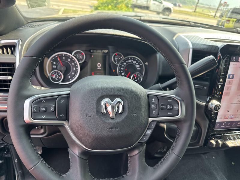 • BIG HORN LEVEL 1 PLUS EQUIPMENT GROUP -inc: Emergency Vehicle Alert System (EVAS) Glove Box Lamp 12 Touchscreen Display Auto Power-Folding Mirrors Footwell Courtesy Lamp Anti-Spin Differential Rear Axle MOPAR Deployable Bed Step Alexa Built-In Forward & Reverse Utility Lights Locking Lower Glove Box Remote Start System 9 Alpine Speakers w/Subwoofer Dual Glove Boxes 2nd Row In Floor Storage Bins Rear View Auto Dim Mirror Rear Dome w/On/Off Switch Lamp LED Bed Lighting GPS Navigation SiriusXM w/360L Connected Travel & Traffic Services Foam Bottle Insert (Door Trim Panel) Big Horn IP Badge Off-Road Info Pages Trailer Tow Pages HD Radio Radio: Uconnect 5 Nav w/12.0 Display Power Heated Folding Telescopic Mirrors Steering Wheel Mounted Audio Controls Air Conditioning ATC w/Dual Zone Control MOPAR Spray In Bedliner Luxury Steering Wheel Power Telescoping Mirrors