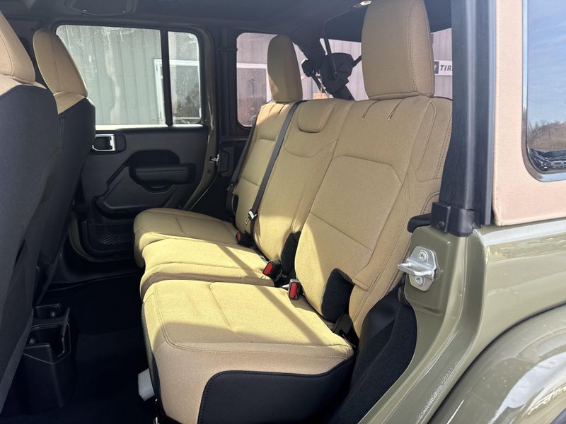 If you want a mid-sized pickup truck that can tackle some serious off-road conditions, the Jeep® Gladiator Sport is about your only option. If you read a Jeep® Gladiator Sport review, you’ll know the truck is offered with a powerful 3.6-liter V6 engine, has a well-appointed interior, and has a handy 5-foot bed that can hold an impressive 1,700 pounds. The Gladiator can tow a max of 7,650 pounds as well. And the Gladiator Sport has something not offered on any other pickup, a removable roof, and removable doors. If you want a similar experience but don’t need the pickup bed, the 2020 Jeep® Wrangler Black and Tan is worth a look. The shorter wheelbase, generous ground clearance, and impressive 4×4 system lets the Wrangler climb over just about anything. The Black and Tan edition Wrangler comes painted in a stealthy black with a contrasting Tan soft top.