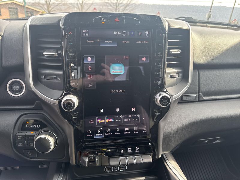• BIG HORN LEVEL 2 EQUIPMENT GROUP -inc: SiriusXM Radio Service Power Adjustable Pedals Leather Wrapped Steering Wheel 12 Touchscreen Display Glove Box Lamp Auto Power-Folding Mirrors 115V Auxiliary Rear Power Outlet Media Hub w/2 Charge Only USBs Heated Front Seats Security Alarm Black Premium Power Mirrors Premium Overhead Console 9 Amplified Speakers w/Subwoofer Disassociated Touchscreen Display Body Color Fender Flares Remote Tailgate Release 115V Auxiliary Power Outlet LED Dome Lamp w/On/Off Switch Universal Garage Door Opener 2nd Row In Floor Storage Bins Sun Visors w/Illuminated Vanity Mirrors LED Footwell Lighting Rear Window Defroster Rear View Auto Dim Mirror Rear Power Sliding Window GPS Navigation Overhead LED Lamps Wheels: 20 x 9 Aluminum Chrome Clad (WRK) Tires: 275/55R20 OWL All Season Bridgestone Brand Tires Auto Dim Exterior Driver Mirror SiriusXM w/360L Connected Travel & Traffic Services Heated Steering Wheel Configurable Drive Mod