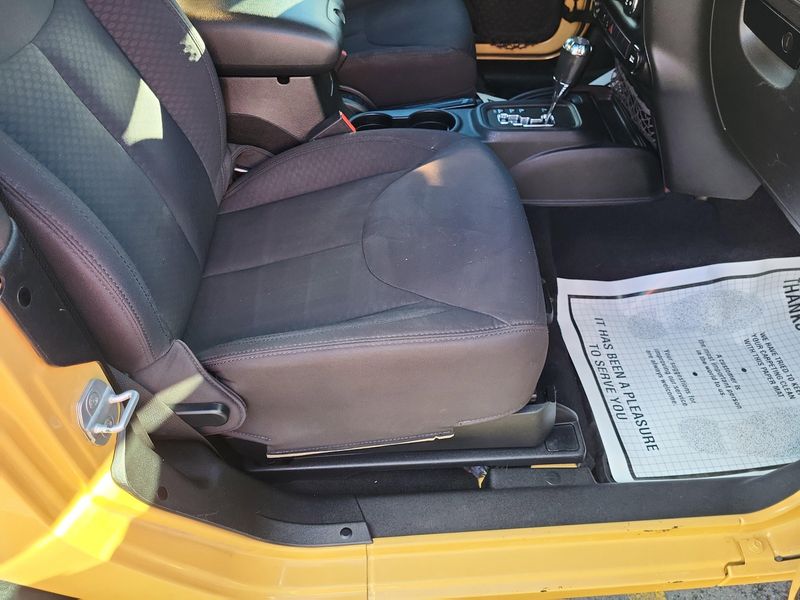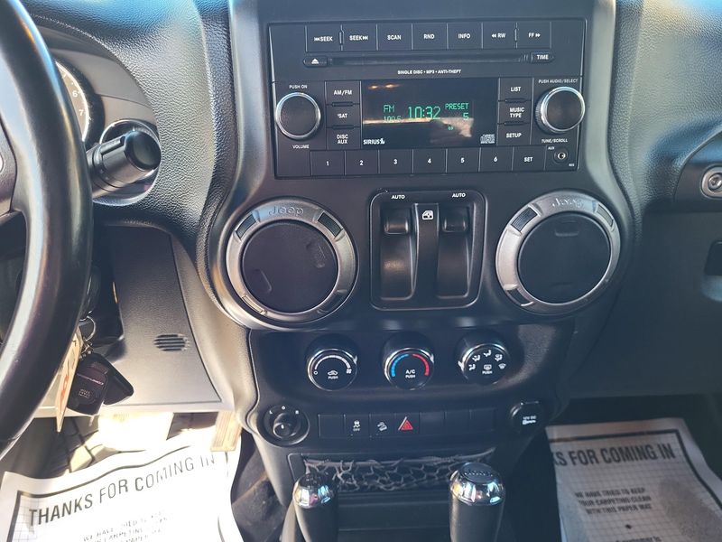 Only 90,994 Miles! Boasts 21 Highway MPG and 17 City MPG! This Jeep Wrangler delivers a Gas V6 3.6L/231 engine powering this Automatic transmission. SIRIUSXM SATELLITE RADIO (subscription required), PWR CONVENIENCE GROUP -inc: pwr heated mirrors, pwr locks, pwr windows w/front one-touch down, remote keyless entry, security alarm, auto-dimming rearview mirror w/reading lamp, P255/75R17 ON/OFF-ROAD OWL TIRES.* This Jeep Wrangler Features the Following Options *24S CUSTOMER PREFERRED ORDER SELECTION PKG -inc: 3.6L V6 engine, 5-speed auto trans, 17 x 7.5 aluminum wheels, P255/75R17 on/off-road OWL tires, air cond, leather-wrapped steering wheel, chrome/leather wrapped shift knob , MOPAR SLUSH MATS, DEEP-TINT SUNSCREEN WINDOWS, CONVENTIONAL REAR DIFFERENTIAL (STD), BLACK INTERIOR, CLOTH SEAT TRIM, AIR CONDITIONING, 5-SPEED AUTOMATIC TRANSMISSION -inc: hill-descent control, tip start, 3.6L SMPI 24V VVT V6 ENGINE (STD), 3.21 AXLE RATIO, 17 X 7.5 ALUMINUM WHEELS.* Visit Us Today *For a must-own Jeep Wrangler come see us at Victor Chrysler Dodge Jeep Ram, 6560 Anthony drive, Victor,, NY 14564. Just minutes away!