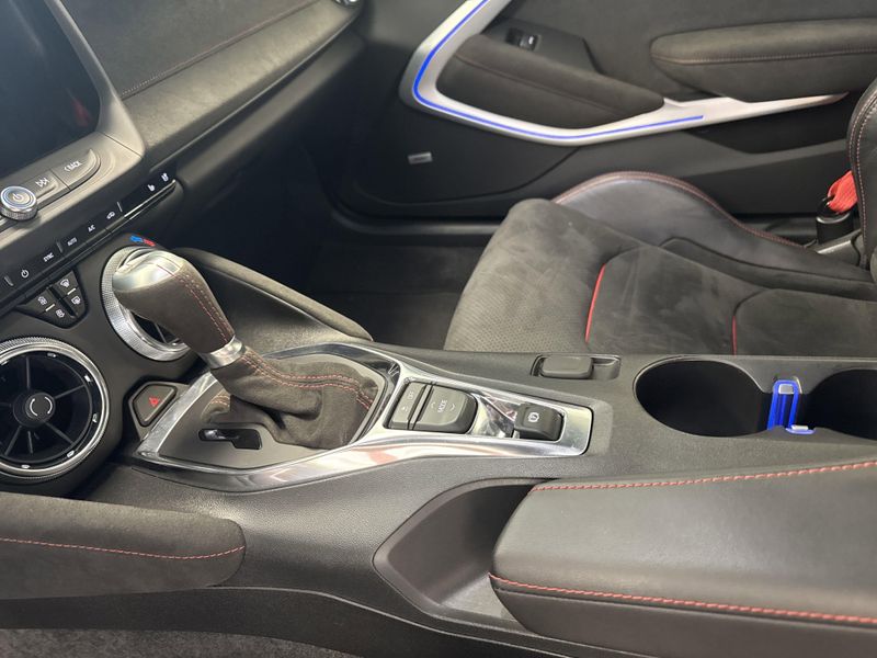 • ZL1 1LE EXTREME TRACK PERFORMANCE PACKAGE includes (FEA) Performance Suspension with DSSV dampers Red calipers (DSM) Satin Black hood wrap (CFW) visible Carbon Fiber weave hood insert (T42) visible weave carbon fiber rear spoiler low-gloss Black outside rearview mirrors dark tail lamps front dive planes unique front splitter with lower DRL deleted (R6O) 305/30R19 front and 325/30R19 rear blackwall summer-only tires (PKJ) 19 x 11 front and 19 x 12 rear low gloss Black-painted forged aluminum wheels (DD8) auto-dimming inside rearview mirror and (A62) rear fixed seat