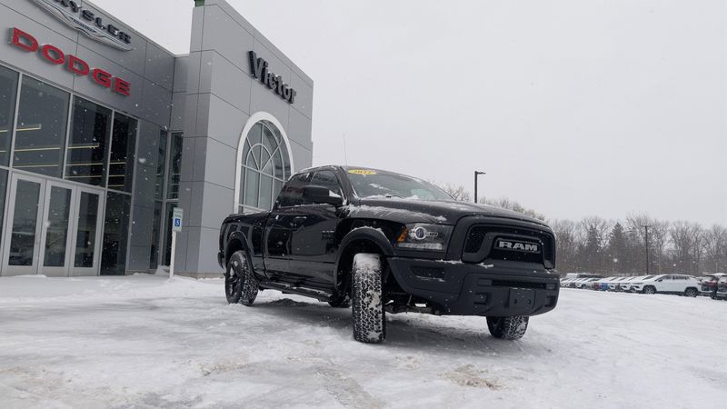 Scores 23 Highway MPG and 16 City MPG! This Ram 1500 Classic boasts a Regular Unleaded V-6 3.6 L/220 engine powering this Automatic transmission. WHEELS: 20 X 9 SEMI-GLOSS BLACK ALUMINUM (STD), TRANSMISSION: 8-SPEED AUTOMATIC (850RE) (STD), TIRES: P275/60R20 BSW AS (STD).* This Ram 1500 Classic Features the Following Options *QUICK ORDER PACKAGE 29F WARLOCK -inc: Engine: 3.6L V6 24V VVT, Transmission: 8-Speed Automatic (850RE), Black Powder Coated Rear Bumper, Black RAM Head Tailgate Badge, 4x4 Flat Black Badge, B-Pillar Black Out, Semi-Gloss Black Hub, Bi-Function Halogen Projector Headlamps, Raised Ride Height, Rear Extra HD Shock Absorbers, Sport Tail Lamps, Black Exterior Truck Badging, Black Powder Coated Front Bumper, Warlock, Black Grille w/RAM Lettering, Black Headlamp Filler Panel, Front Wheel Well Liners, Warlock Interior Accents, Goodyear Brand Tires, Black Wheel Flares , REAR WINDOW DEFROSTER, MANUFACTURER'S STATEMENT OF ORIGIN, LOCKING LUG NUTS, GVWR: 6,800 LBS (STD), FRONT LICENSE PLATE BRACKET, ENGINE: 3.6L V6 24V VVT (STD), DIAMOND BLACK CRYSTAL PEARLCOAT, BLACK, CLOTH 40/20/40 BENCH SEAT, 3.21 REAR AXLE RATIO (STD).* Stop By Today *Treat yourself- stop by Victor Chrysler Dodge Jeep Ram located at 6560 Anthony drive, Victor,, NY 14564 to make this car yours today!