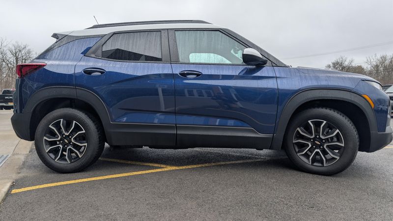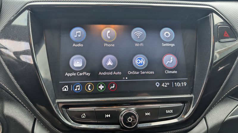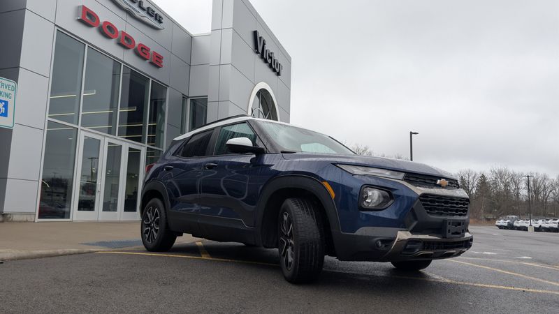 Boasts 33 Highway MPG and 29 City MPG! This Chevrolet Trailblazer boasts a Gas I3 1.3L/ engine powering this Variable transmission. VISORS, DRIVER AND FRONT PASSENGER ILLUMINATED VANITY MIRRORS, COVERED, SLIDING, USB CHARGING-ONLY PORTS one type-A and one type-C, charging only, located on rear of center console, TRANSMISSION, CONTINUOUSLY VARIABLE (CVT) (STD).* This Chevrolet Trailblazer Features the Following Options *CONVENIENCE PACKAGE includes (C68) automatic climate control air conditioning, (UIJ) 8 diagonal color touchscreen display, (USS) one type-A and one type-C charging only USB ports, (KI6) 120-volt power outlet, (DD8) inside rearview auto-dimming mirror and (DMS) driver and front passenger illuminated vanity mirrors, covered, sliding visors, AUDIO SYSTEM, CHEVROLET INFOTAINMENT 3 SYSTEM 7 diagonal color touchscreen, AM/FM stereo. Additional features for compatible phones include: Bluetooth audio streaming for 2 active devices, voice command pass-through to phone, Apple CarPlay and Android Auto capable. (8 screen when (ZL3) Convenience Package and (ZL5) Driver Confidence Package are ordered.) (STD) , SUMMIT WHITE TWO-TONE ROOF, SENSOR, CABIN HUMIDITY, SEATS, FRONT BUCKET (STD), REAR PARK ASSIST Beginning with start of production through November 28, 2022, vehicles will be forced to include (00Y) Not Equipped with Rear Park Assist, which removes Rear Park Assist. See dealer for details or the window label for the features on a specific vehicle. Beginning December 26, 2022, certain vehicles will be forced to include (060) Not Equipped with Rear Park Assist, which removes Rear Park Assist. Does not include later dealer retrofit. See dealer for details or the window label for the features on a specific vehicle.), POWER OUTLET, 120-VOLT located on rear of front console, MIRROR, INSIDE REARVIEW AUTO-DIMMING, LICENSE PLATE BRACKET, FRONT, JET BLACK WITH ARIZONA ACCENTS, LEATHERETTE SEAT TRIM.* Visit Us Today *Test drive this must-see, must-drive, must-own beauty today at Victor Chrysler Dodge Jeep Ram, 6560 Anthony drive, Victor,, NY 14564.