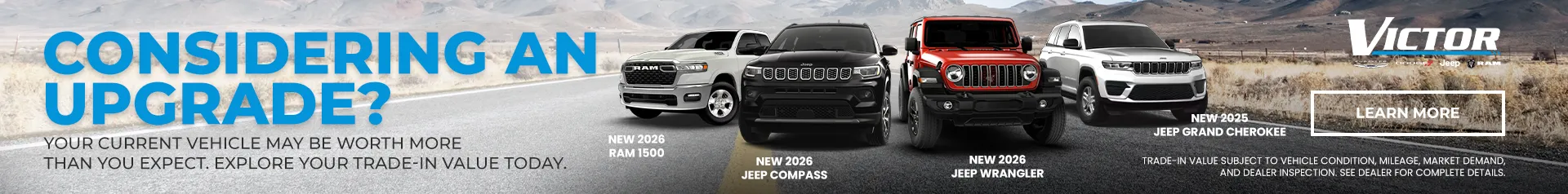 Want to buy a new or used car in Victor, NY? Looking for a place to sell products that offer the best deals on new or used cars? Would you like to test drive a vehicle before making a decision? Victor Chrysler Dodge Jeep Ram is the city’s leading dealer. From RAM to Jeep®, you will find all the famous names under one roof.